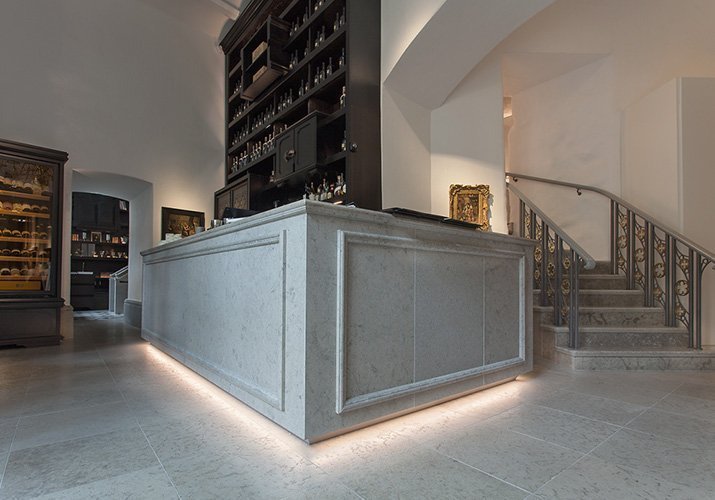 We offer tiles, kitchen worktops, windowsills, steps and skirting made from this limestone.